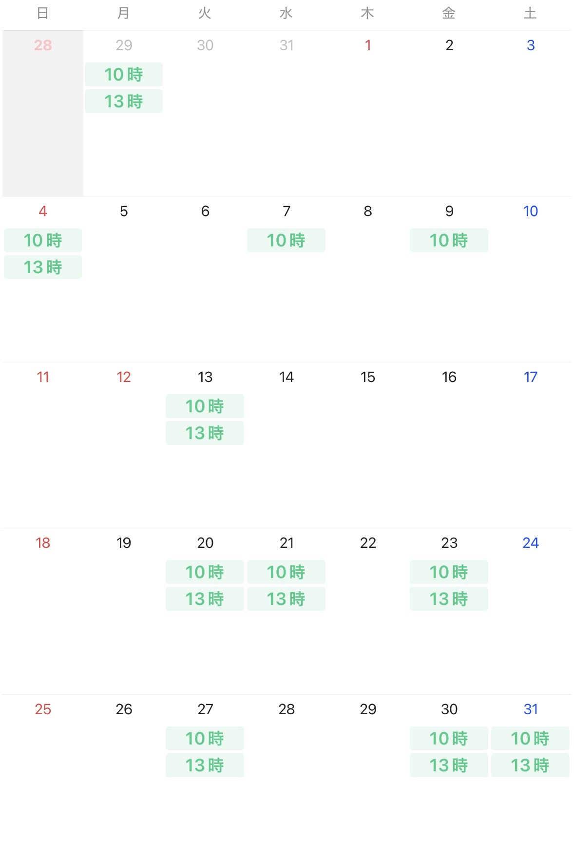 2026.1月 最新ご予約カレンダー