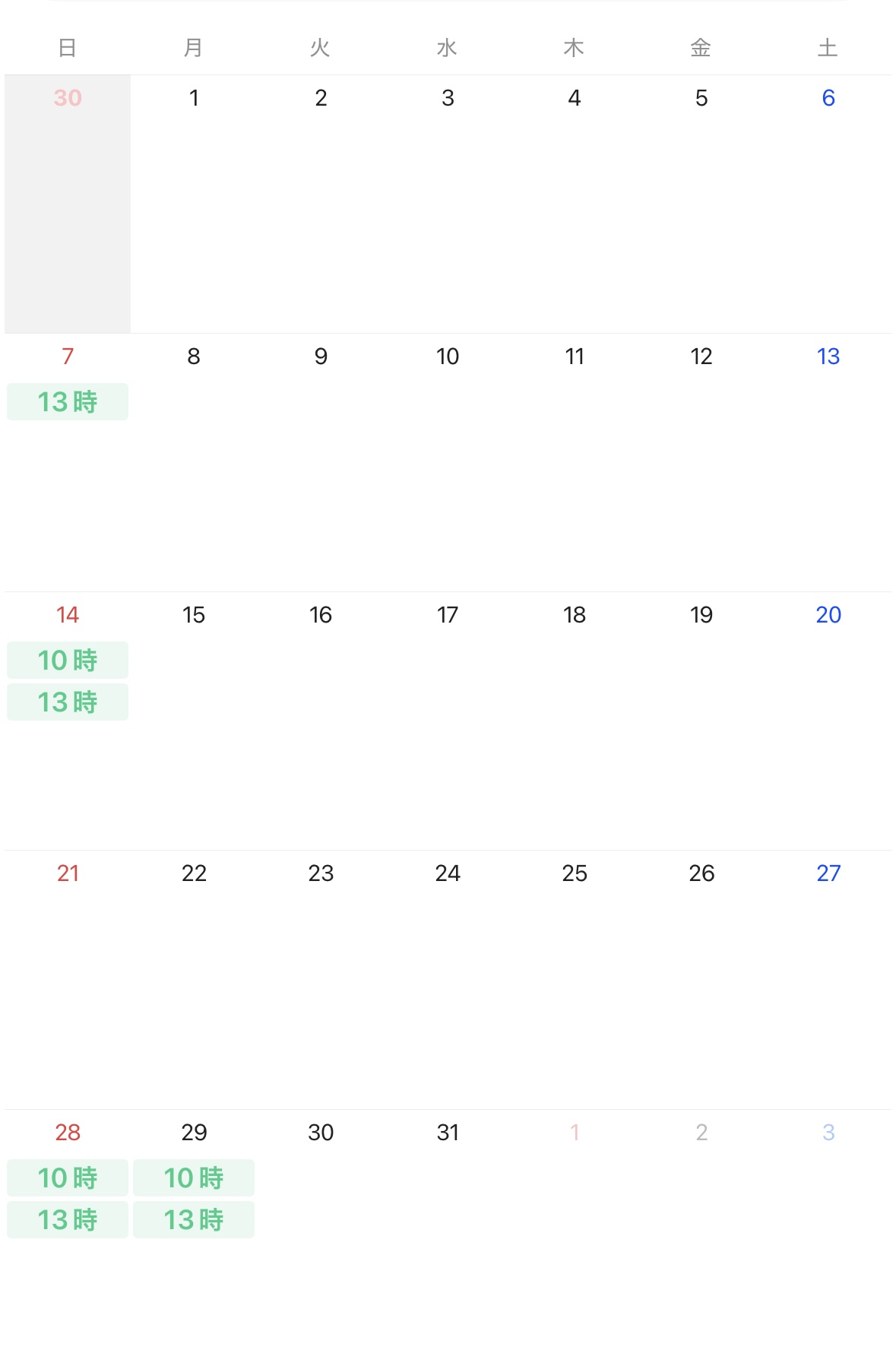 キャンセル及び日程変更は3日前までにお願いいたします。